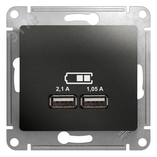 GLOSSA Розетка USB антрацит в рамку 5В/2100мА