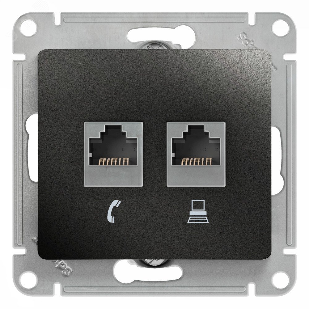 GLOSSA Розетка двойная RJ11+RJ45 категория 5E антрацит в рамку