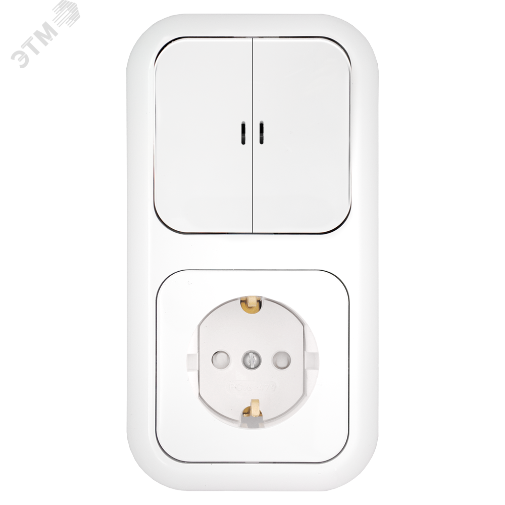 Беларусь Блок скрытый: выключатель двухклавишный с индикатором + розетка