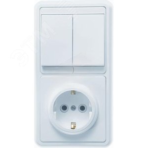 БЭЛЛА Блок комбинированны скрытой установки (двухклавишный выключатель+розетка с заземляющим контактом) БКВР-032, белый