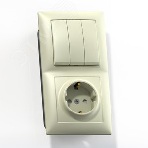 СЕЛЕНА  Блок Выключатель 3 клавишный 10А/ розетка с заземлением со шторками 16А БКВР-416 скрытый слоновая кость Кунцево 8175