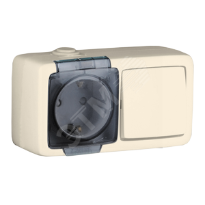 Alfa Блок с пылевлагозащитой, розетка одноместная, со шторками, с заземляющими контактами, выключатель одноклавишный, слоновая кость
