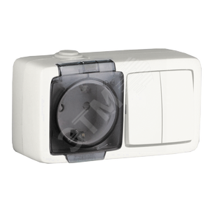 Alfa Блок с пылевлагозащитой, розетка одноместная, со шторками, с заземляющими контактами, выключатель двухклавишный, белый