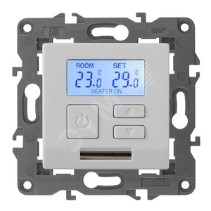 Терморегулятор теплый пол / отопление электронный серии Эра Elegance цвет белый 14-4111-01. Рамки приобретаются отдельно. Рамки Эра Elegance ПЛАСТИК: 1 пост 14-5001-хх, 2 поста 14-5002-хх, 3 поста 14-5003-хх, 4 поста 14-5004-хх, 5 постов 14-5005-хх, СТЕКЛО: 1 пост 14-5101-хх, 2 поста 14-5102-хх, 3 поста 14-5103-хх, 4 поста 14-5104-хх, МЕТАЛЛ: 1 пост 14-5201-хх, 2 поста 14-5202-хх, 3 поста 14-5203-хх, 4 поста 14-5204-хх, ДЕРЕВО: 1 пост 14-5301-хх, 2 поста 14-5302-хх, 3 поста 14-5303-хх, 4 поста 14-5304-хх (хх - код цвета: 00-прозрачный, 01-белый, белёный дуб, 02-слоновая кость, 03-алюминий, 04-шампань, 05-чёрный, чёрное дерево, 07-ясень, 09-дуб, 10-венге, 11-клён, 14-медь, 21-жёлтый, 22-оранжевый, 23-красный, 25-бордо, 26-лайм, 27-зелёный, 28-голубой, 29-синий, 30-розовый, 31-мокко, 32-серый, 41-сталь, 42-титан).