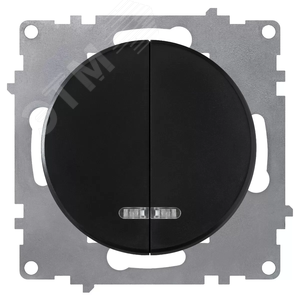 Выключатель двойной с подсветкой, цвет чёрный (серия Florence)