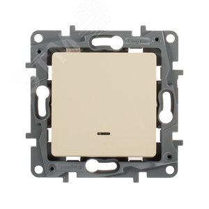 Выключатель одноклавишный, с подсветкой, бежевый, безвинтовые зажимы