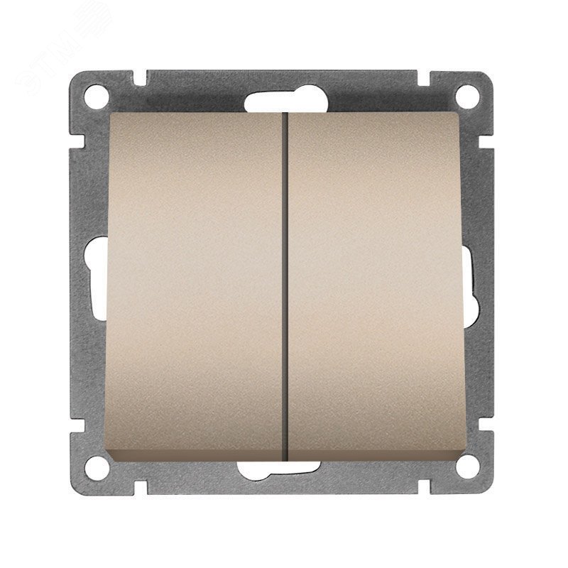 Выключатель двухклавишный серия Афина , с/у, 10А, 220В, шампань (еврослот)