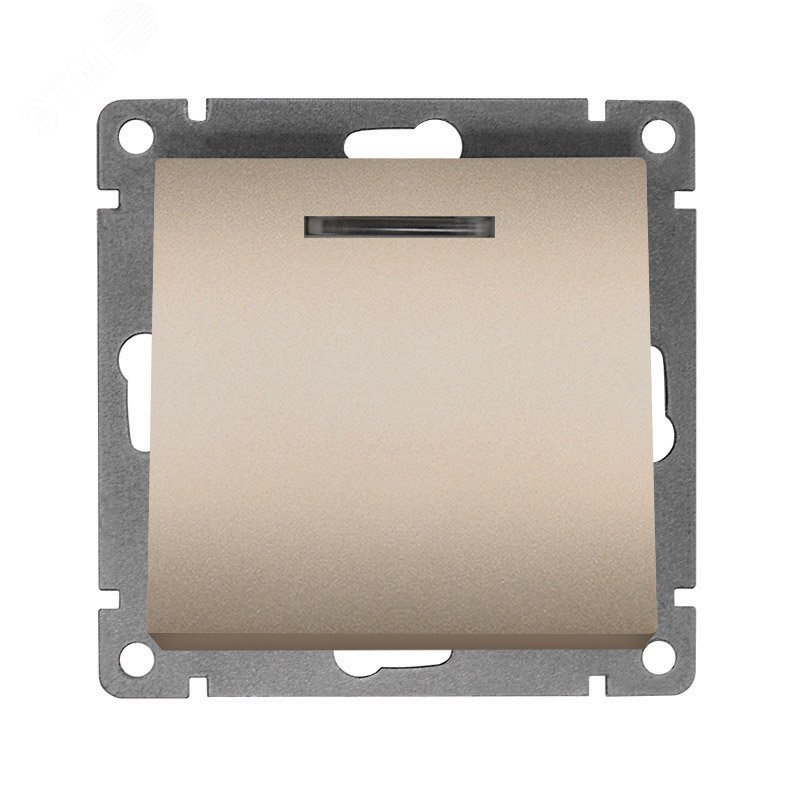 Выключатель одноклавишный с подсветкой серия Афина , с/у, 10А, 220В, шампань (еврослот)