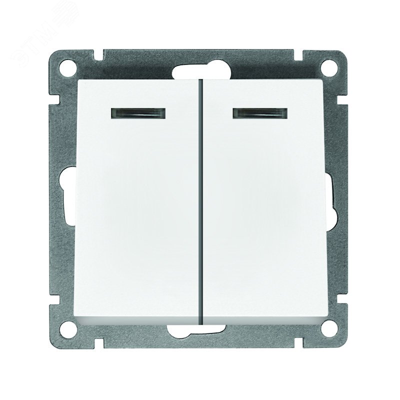 Выключатель двухклавишный с подсветкой серия Афина , с/у, 10А, 220В, белый (еврослот)