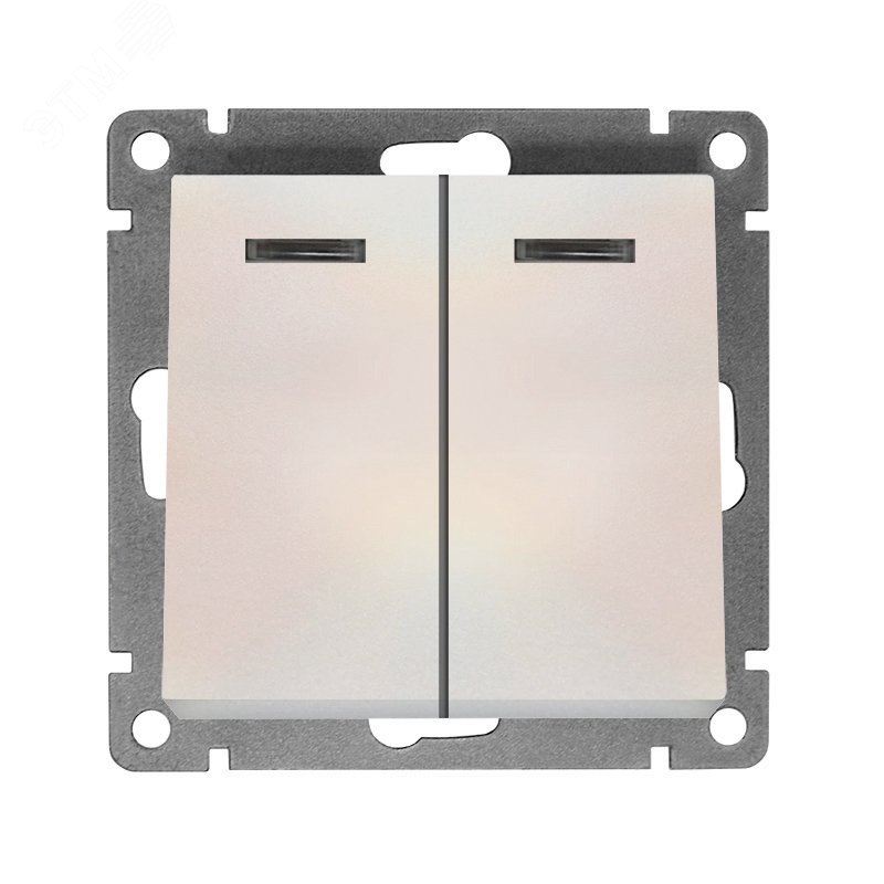 Выключатель двухклавишный с подсветкой серия Афина, с/у, 10А, 220В, жемчуг