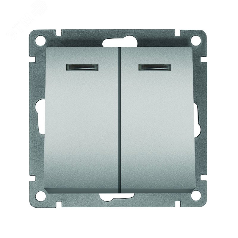 Выключатель двухклавишный с подсветкой серия Афина , с/у, 10А, 220В, серебро (еврослот)