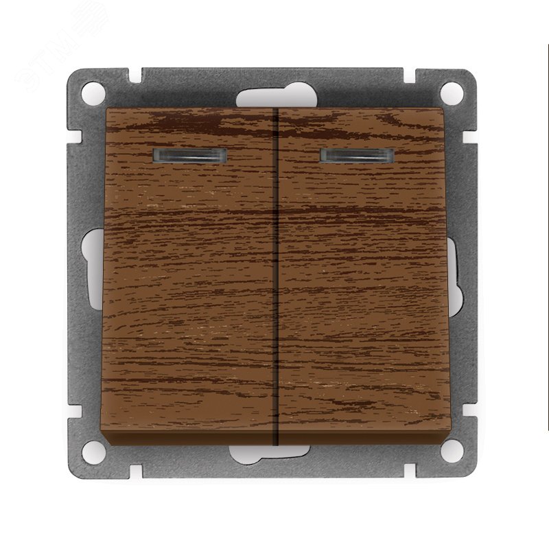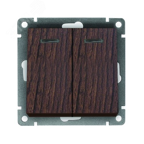 Выключатель двухклавишный с подсветкой серия Афина , с/у, 10А, 220В, венге (еврослот)