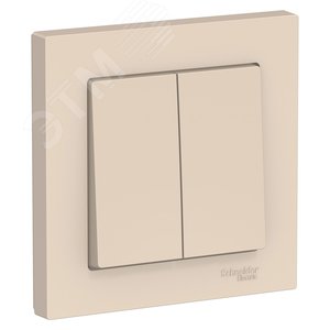 Выключатель двухклавишный ATLASDESIGN схема 5 10АХ в сборе бежевый