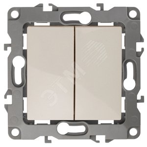 Выключатель 2-клавишный серии Эра 12 скрытой установки механизм цвет слоновая кость 12-1104-02. Номинальные характеристики 10А 250В . Сделан из поликарбоната, оснащено автоматическими клеммами для быстрой и надёжной фиксации жил кабеля в механизме. Парные клеммы обеспечивают соединение шлейфом. Монтаж в подрозетник производится и на лапки, и на винты. Рамки приобретаются отдельно. Рамки Эра 12: 1 пост 12-5001-хх, 2 поста 12-5002-хх, 3 поста 12-5003-хх, 4 поста 12-5004-хх, 5 постов 12-5005-хх. Рамки Эра 12 Сатин: 1 пост 12-5101-хх, 2 поста 12-5102-хх, 3 поста 12-5103-хх, 4 поста 12-5104-хх, 5 постов - 12-5105-хх (хх - код цвета: 01-белый, 02-слоновая кость, 03-алюминий, 04-шампань, 05-антрацит, 06-чёрный, 07-ольха(белёный дуб-сатин), 08-вишня, 09-дуб, 10-венге, 11-сосна, 21-жёлтый, 22-оранжевый, 23-красный, 24-охра, 25-бордо, 26-лайм, 27-зелёный, 28-голубой, 29-синий).