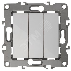 Выключатель 3-клавишный серии Эра 12 скрытой установки механизм цвет белый 12-1107-01. Номинальные характеристики 10А 250В . Сделан из поликарбоната, оснащён винтовыми уникальными клеммами ЭКСПЕРТ для надёжной фиксации жил кабеля в механизме. Парные клеммы обеспечивают соединение шлейфом. Монтаж в подрозетник производится и на лапки, и на винты. Рамки приобретаются отдельно. Рамки Эра 12: 1 пост 12-5001-хх, 2 поста 12-5002-хх, 3 поста 12-5003-хх, 4 поста 12-5004-хх, 5 постов 12-5005-хх. Рамки Эра 12 Сатин: 1 пост 12-5101-хх, 2 поста 12-5102-хх, 3 поста 12-5103-хх, 4 поста 12-5104-хх, 5 постов - 12-5105-хх (хх - код цвета: 01-белый, 02-слоновая кость, 03-алюминий, 04-шампань, 05-антрацит, 06-чёрный, 07-ольха(белёный дуб-сатин), 08-вишня, 09-дуб, 10-венге, 11-сосна, 21-жёлтый, 22-оранжевый, 23-красный, 24-охра, 25-бордо, 26-лайм, 27-зелёный, 28-голубой, 29-синий).