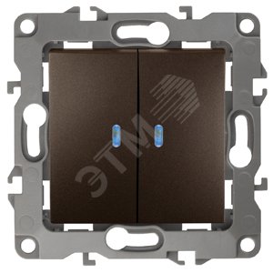 Выключатель 2-клавишный с подсветкой серии Эра 12 скрыт.установки механизм цвет бронза 12-1105-13. Номинальные характеристики 10А 250В . Сделан из поликарбоната, оснащено автоматическими клеммами для быстрой и надёжной фиксации жил кабеля в механизме. Парные клеммы обеспечивают соединение шлейфом. Монтаж в подрозетник производится и на лапки, и на винты. Рамки приобретаются отдельно. Рамки Эра 12: 1 пост 12-5001-хх, 2 поста 12-5002-хх, 3 поста 12-5003-хх, 4 поста 12-5004-хх, 5 постов 12-5005-хх. Рамки Эра 12 Сатин: 1 пост 12-5101-хх, 2 поста 12-5102-хх, 3 поста 12-5103-хх, 4 поста 12-5104-хх, 5 постов - 12-5105-хх (хх - код цвета: 01-белый, 02-слоновая кость, 03-алюминий, 04-шампань, 05-антрацит, 06-чёрный, 07-ольха(белёный дуб-сатин), 08-вишня, 09-дуб, 10-венге, 11-сосна, 21-жёлтый, 22-оранжевый, 23-красный, 24-охра, 25-бордо, 26-лайм, 27-зелёный, 28-голубой, 29-синий).