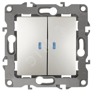 Выключатель 2-клавишный с подсветкой серии Эра 12 скрыт.установки механизм цвет перламутр 12-1105-15. Номинальные характеристики 10А 250В . Сделан из поликарбоната, оснащено автоматическими клеммами для быстрой и надёжной фиксации жил кабеля в механизме. Парные клеммы обеспечивают соединение шлейфом. Монтаж в подрозетник производится и на лапки, и на винты. Рамки приобретаются отдельно. Рамки Эра 12: 1 пост 12-5001-хх, 2 поста 12-5002-хх, 3 поста 12-5003-хх, 4 поста 12-5004-хх, 5 постов 12-5005-хх. Рамки Эра 12 Сатин: 1 пост 12-5101-хх, 2 поста 12-5102-хх, 3 поста 12-5103-хх, 4 поста 12-5104-хх, 5 постов - 12-5105-хх (хх - код цвета: 01-белый, 02-слоновая кость, 03-алюминий, 04-шампань, 05-антрацит, 06-чёрный, 07-ольха(белёный дуб-сатин), 08-вишня, 09-дуб, 10-венге, 11-сосна, 21-жёлтый, 22-оранжевый, 23-красный, 24-охра, 25-бордо, 26-лайм, 27-зелёный, 28-голубой, 29-синий).