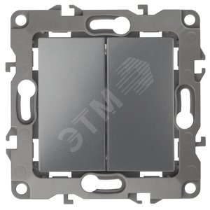 Выключатель двойной, 10АХ-250В, б.л., Эра12, графит,12-1004-12