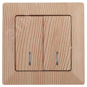 Выключатель Intro Solo 4-105-11 двухклавишный с подсветкой, 10А-250В, IP20, СУ, сосна