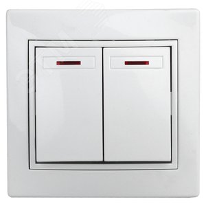 Выключатель Intro Plano 1-105-01 двухклавишный с подсветкой, 10А-250В, IP20, СУ, Plano, белый