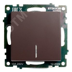 Выключатель одноклавишный c индикатором (механизм), 250В, 10А, серия Катрин, шоколад, Stekker