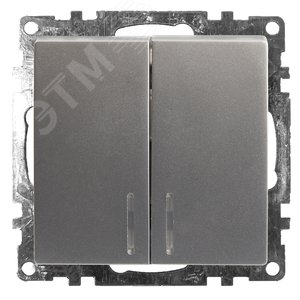 Выключатель 2-клавишный c индикатором (механизм) 250В, 10А, серия Катрин, серебро