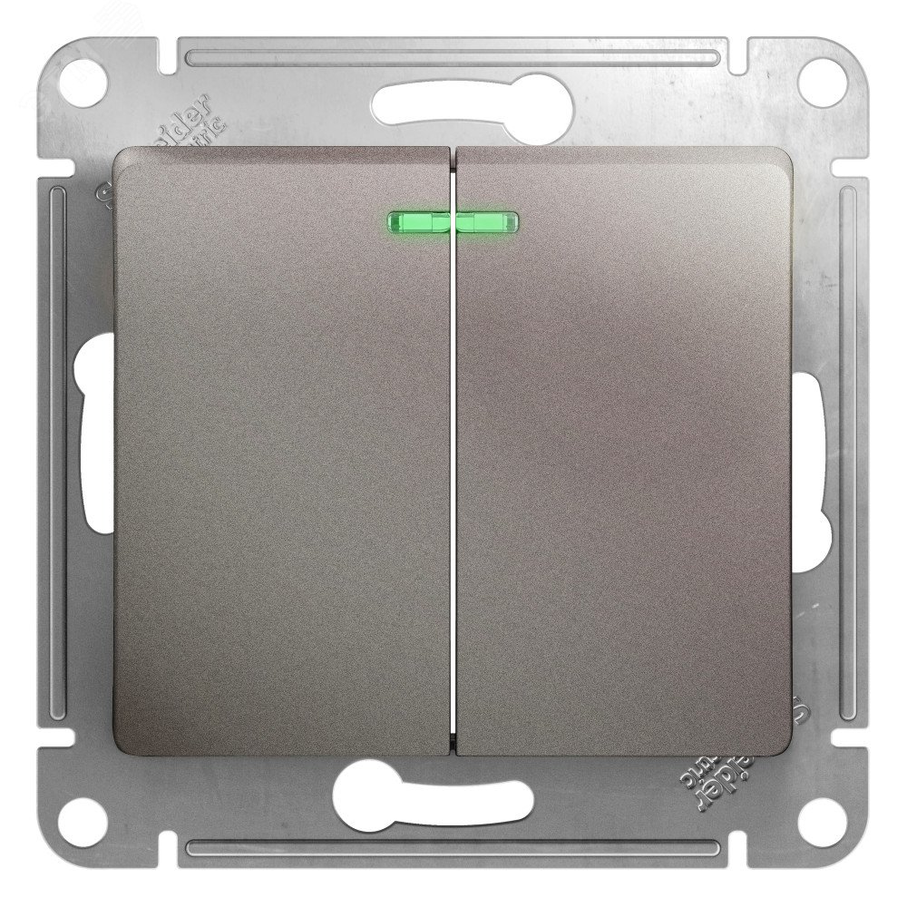 GLOSSA Выключатель двухклавишный с подсветкой схема 5а платина