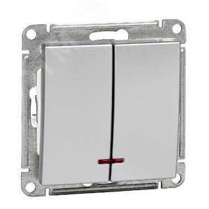 W59 Выключатель двухклавишный с подсв. 10АХ, механизм, матовый хром