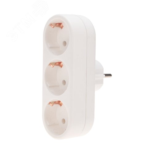 Тройник электрический линейный 16 А вертикальный с заземлением, белый