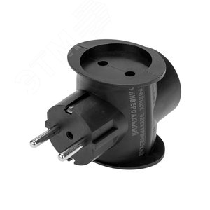 Тройник электрический универсальный 16 А одно гнездо с заземлением черный