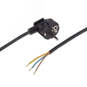 Шнур электрический с вилкой ПВС 3х0,75 мм, 1,5м, черный