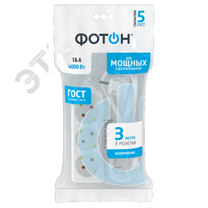Корпус изготовлен из негорючего и ударопрочного пластика. Контактная группа изготовлена из латуни, что обеспечивает высокую электропроводность и максимально плотный контакт со штырями вилки подключаемых приборов. Гнездовые контакты расположены под углом для одновременного подключения нескольких приборов. Подходят для подключения штепсельных вилок российского и евростандарта. Провод ПВС - медная токопроводящая жила в двойной ПВХ изоляции. Характеризуется устойчивостью к нагреву и повышенной гибкостью. Безусловная гарантия 5 лет. Вся продукция полностью соответствует нормам российского ГОСТ и EAC. Все удлинители и разветвители ''ФОТОН'' проходят двойной контроль качества и работоспособности.