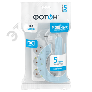 Корпус изготовлен из негорючего и ударопрочного пластика. Контактная группа изготовлена из латуни, что обеспечивает высокую электропроводность и максимально плотный контакт со штырями вилки подключаемых приборов. Гнездовые контакты расположены под углом для одновременного подключения нескольких приборов. Подходят для подключения штепсельных вилок российского и евростандарта. Провод ПВС - медная токопроводящая жила в двойной ПВХ изоляции. Характеризуется устойчивостью к нагреву и повышенной гибкостью. Безусловная гарантия 5 лет. Вся продукция полностью соответствует нормам российского ГОСТ и EAC. Все удлинители и разветвители ''ФОТОН'' проходят двойной контроль качества и работоспособности.