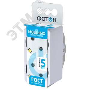 Сетевой разветвитель для подключения нескольких электроприборов к стационарной розетке. Корпус изготовлен из негорючего и ударопрочного ABS-пластика. Контактная группа изготовлена из латуни, что обеспечивает высокую электропроводность и максимально плотный контакт со штырями вилки подключаемых приборов. Может использоваться в качестве переходника для подключения электроприборов с евровилкой к розеткам российского стандарта. Безусловная гарантия 5 лет. Вся продукция полностью соответствует нормам российского ГОСТ и EAC. Все удлинители и разветвители ''ФОТОН'' проходят двойной контроль качества и работоспособности.