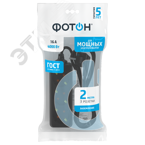 Удлинитель сетевой '''' 16-23Е, 2м, 3 розетки, 16А, с заземлением,Черный