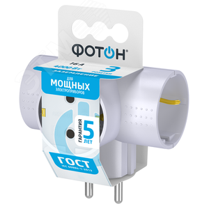 Сетевой разветвитель для подключения нескольких электроприборов к стационарной розетке. Корпус изготовлен из негорючего и ударопрочного ABS-пластика. Контактная группа изготовлена из латуни, что обеспечивает высокую электропроводность и максимально плотный контакт со штырями вилки подключаемых приборов. Может использоваться в качестве переходника для подключения электроприборов с евровилкой к розеткам российского стандарта. Безусловная гарантия 5 лет. Вся продукция полностью соответствует нормам российского ГОСТ и EAC. Все удлинители и разветвители ''ФОТОН'' проходят двойной контроль качества и работоспособности.