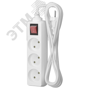 Удлинитель сетевой 10-23S, 2м, 3 розетки, 10А, с выкл., Белый
