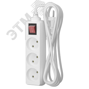 Удлинитель сетевой 10-33S, 3м, 3 розетки, 10А, с выкл., Белый