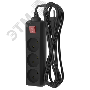 Удлинитель сетевой 10-33S, 3м, 3 розетки, 10А, с выкл., Черный