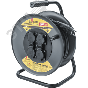 Удлинитель силовой NPE-RM-04-50-E-IP44-3x2.5 на металлической катушке с термовыключателем 4 гнезда c/з 50м КГ 3х2,5 3500 Вт IP44