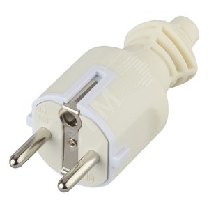 Вилка c/з 16A прямой ввод ПВХ оболочка белая (10/200/6000) V4(W)