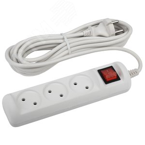 Удлинитель электрический U-3s-5m-2x1 без заземления c выключателем 3 розетки 5м ПВС 2x1мм2 10А