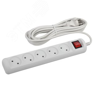 Удлинитель электрический U-5s-5m-2x1 без заземления c выключателем 5 розеток 5м ПВС 2x1мм2 10А