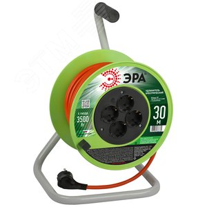 Удлинитель силовой на пластиковой катушке c заземлением 4 розетки 30м ПВС 3х1,5мм2 RP-4e-3x1.5-30m