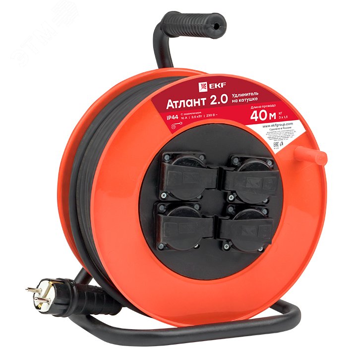 Удлинитель на катушке 'Атлант 2.0' 4 гнезда 40м с заземлением КГ 3x1.5 16А/3.5кВт IP44 PROxima