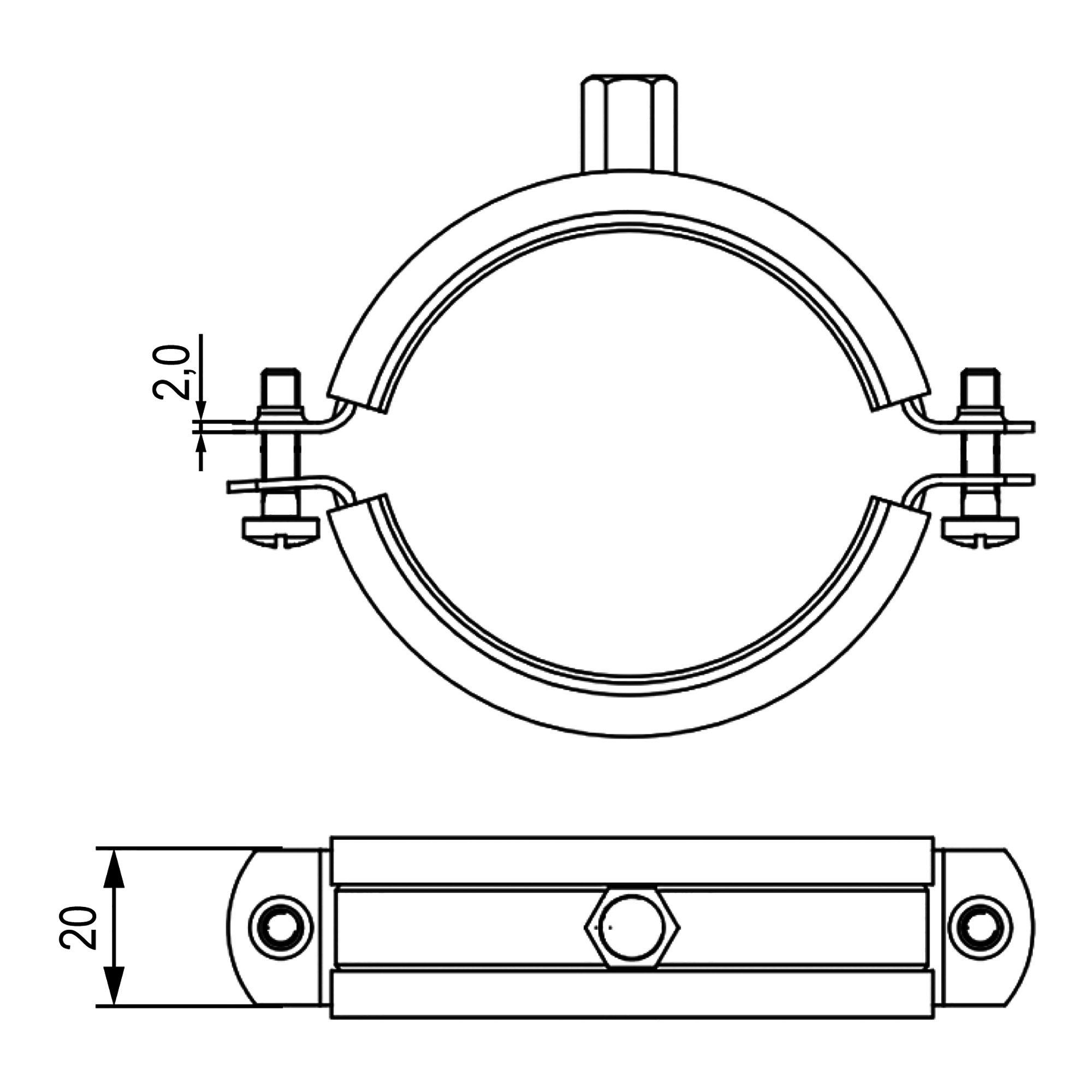 Хомут для средних нагрузок с изоляцией с гайкой М8/М10 для труб d 5"