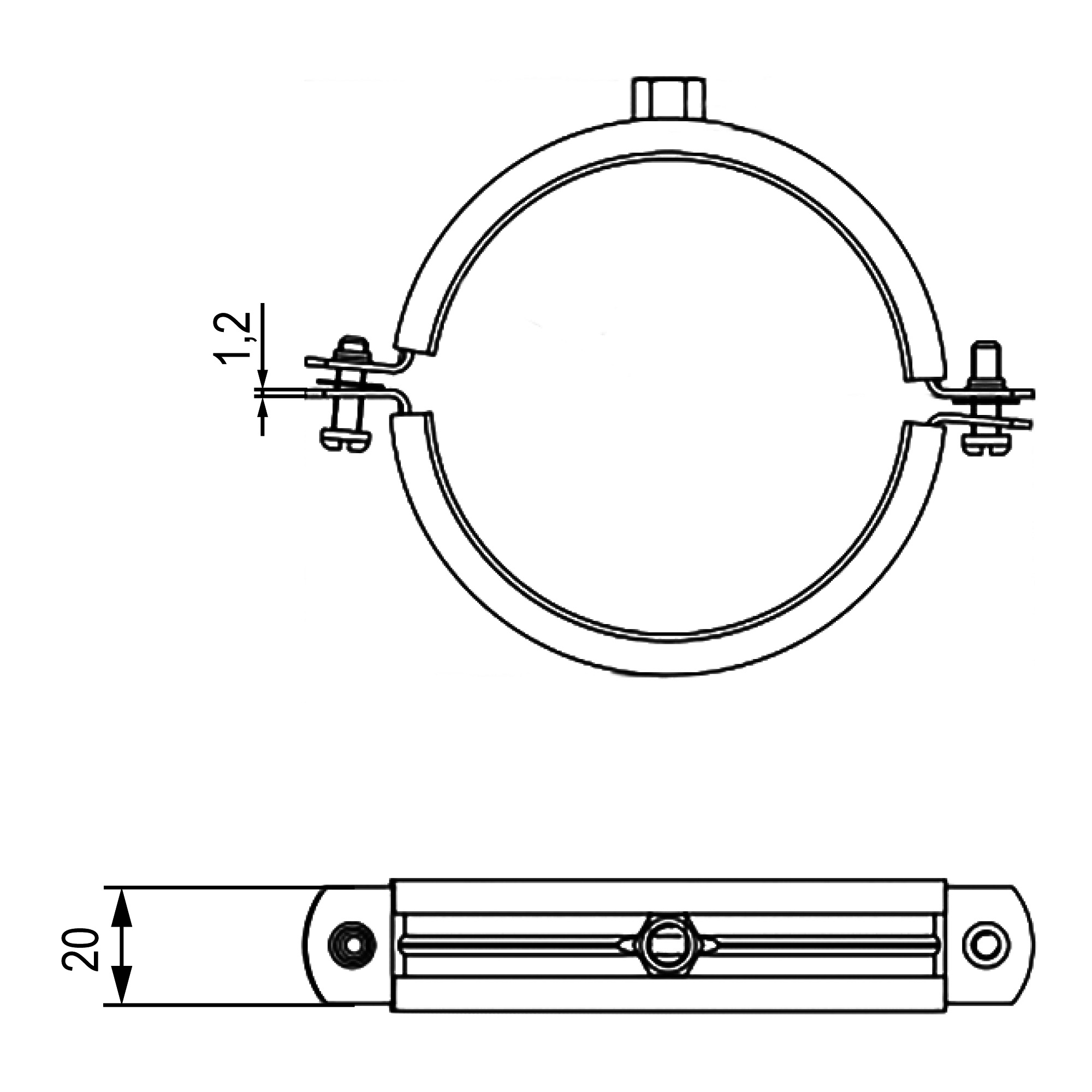 Хомут для воздуховодов с изоляцией с гайкой М8 для труб d 355 мм