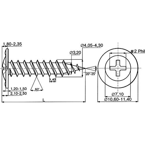 Форма головки .......... Плоская головкаСистема завинчивания / тип шлица .......... Крест. шлиц ph (phillips)
