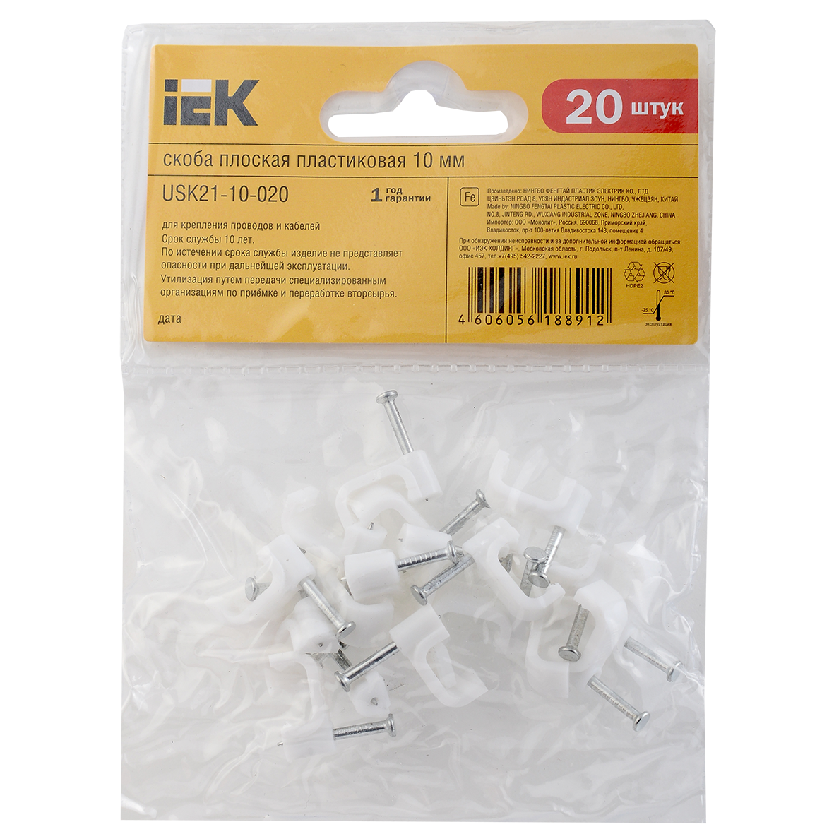 Скоба 10мм плоская пластиковая (20шт) IEK