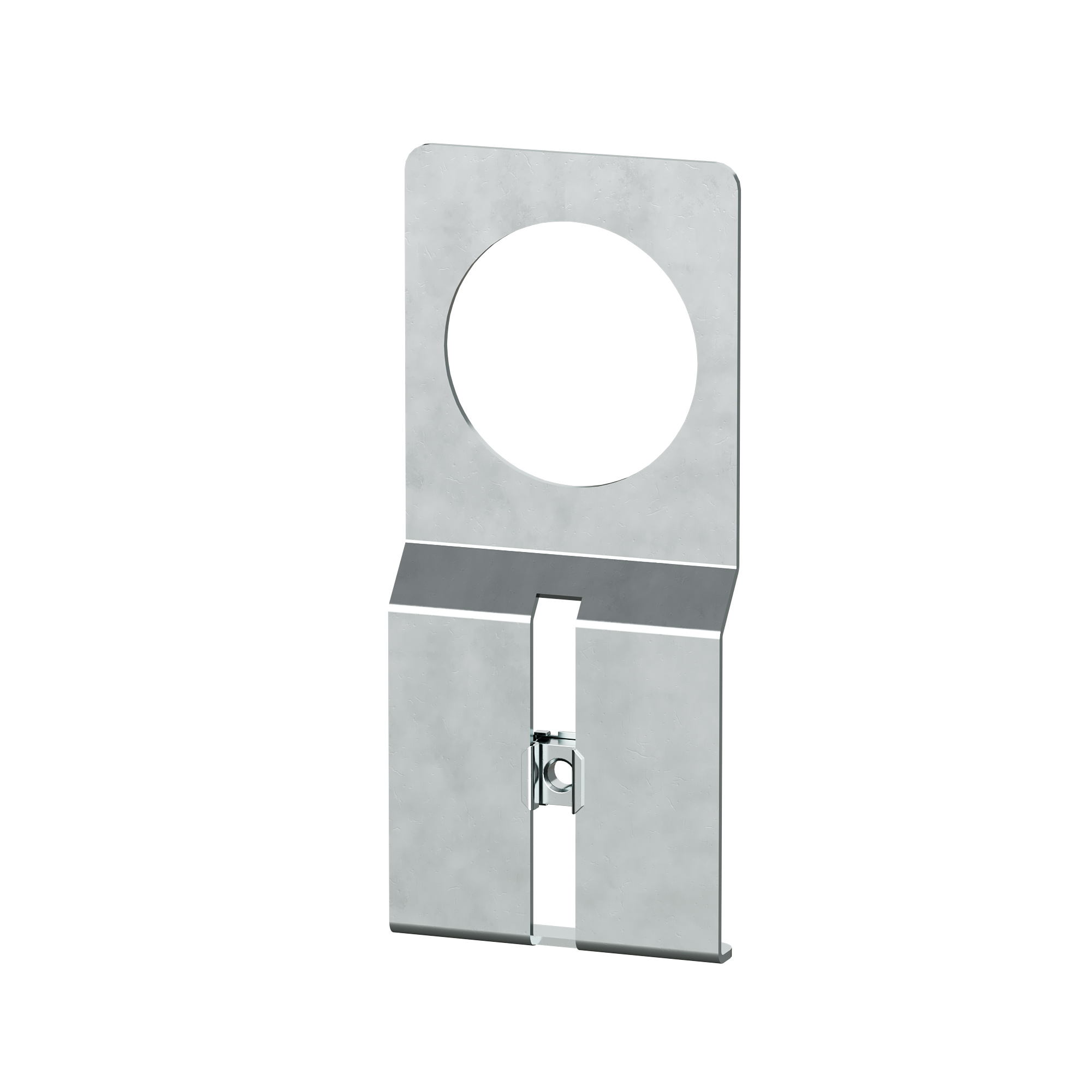 Держатель предназначен для фиксации перфорированного короба на внутренней плоскости дверце шкафа или панели управления. Обеспечивает подводку кабельно-проводниковой продукции к светосигнальной аппаратуре и устройствам управления диаметром 30 мм. В составе держателей есть клетьевые гайки для крепления короба с резьбой М4. Подвижность клетьевых гаек позволяет использовать перфорированные короба с разной шириной основания.